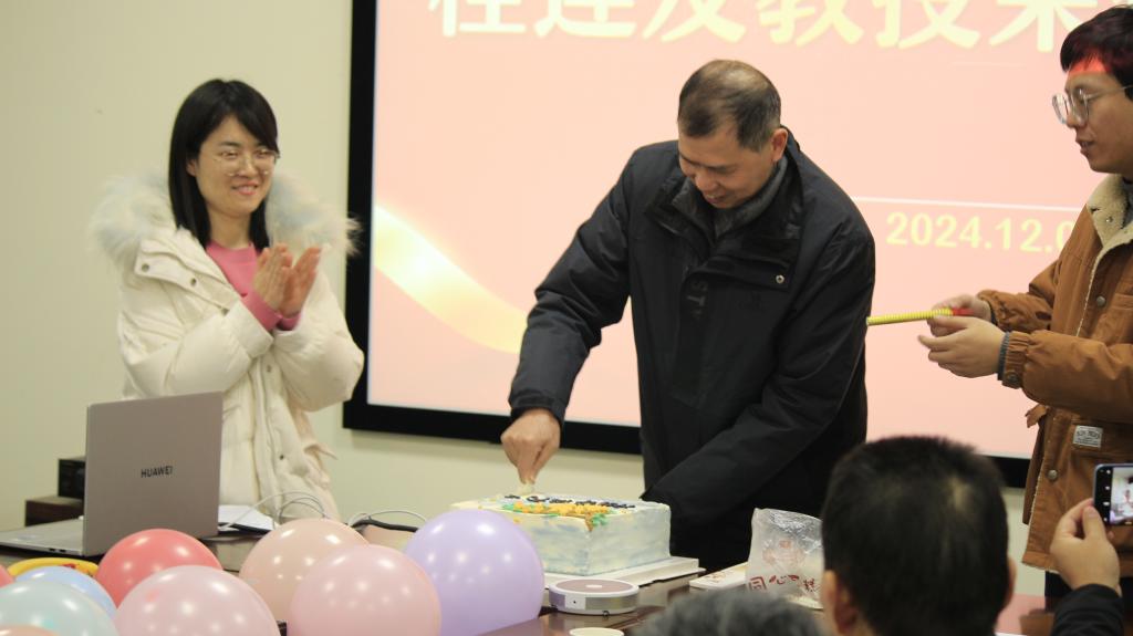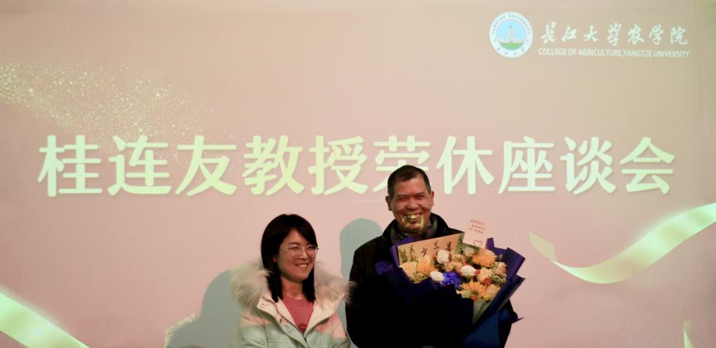 接着,桂教授的员工、青年教师代表杨玉婷老师将一束象征敬意与祝福的鲜花献给桂教授,以感谢他多年来的辛勤付出与无私奉献。