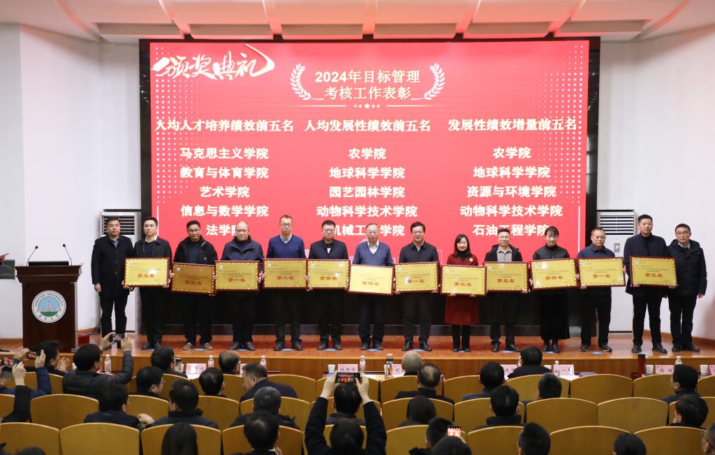 在校校领导、中层干部,以及受表彰先进集体和个人参加了会议。