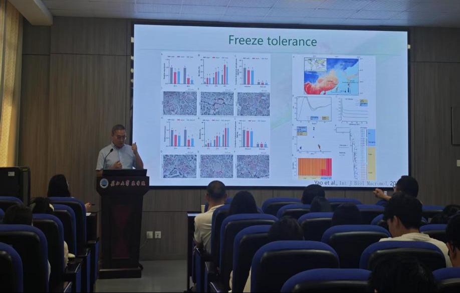 报告结束后,现场的师生们积极参与了交流研讨环节。同学们就报告中的理论知识和研究方法等方面踊跃提问和交流。从粉蚧的入侵机制、寄主适应性、气候胁迫下种群增值潜力及蜜源植物等应用效应、二化螟的耐寒机制及相关基因的挖掘、功能验证等技术进行了深入探讨。