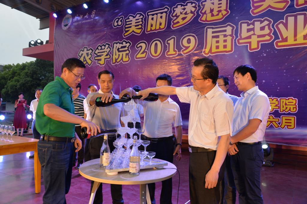 晚上七时许,餐会正式开始,公司相关职能部门负责人与M88官方网站老师们,一同为2019届毕业生送上真挚的祝福。“感恩的心•眷念的情”赠言签名活动中,老师和同学们纷纷走向台前,在留言板前长久驻足,提笔写下满腔深情;“梦想启航•助力放飞”环节里,500余个氢气球承载着师生们的梦想,飞向了遥远、蔚蓝的天际;香槟开启仪式上,师生们斟满祝福,为“长大长新、乡村振兴、国家复兴”共同举杯。