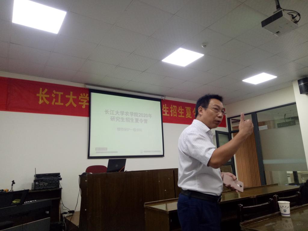 植保系党支部书记金振宇副教授主持会议。首先,他向同学们介绍了本系各招生方向的导师情况、往年招生计划以及公司和公司对应届生报考本校研究生的各项奖助政策等信息。