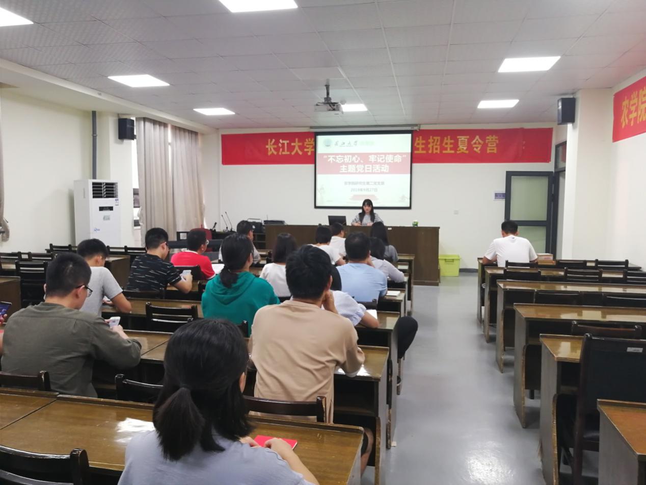 新闻网讯(通讯员 施秀飞)9月27日下午6时,M88官方网站研究生第二党支部“不忘初心、牢记使命”九月主题党日活动在农科楼3073会议室召开。研究生第二党支部在校正式党员和预备党员参加此次活动,会议由辅导员付雪娇老师主持。