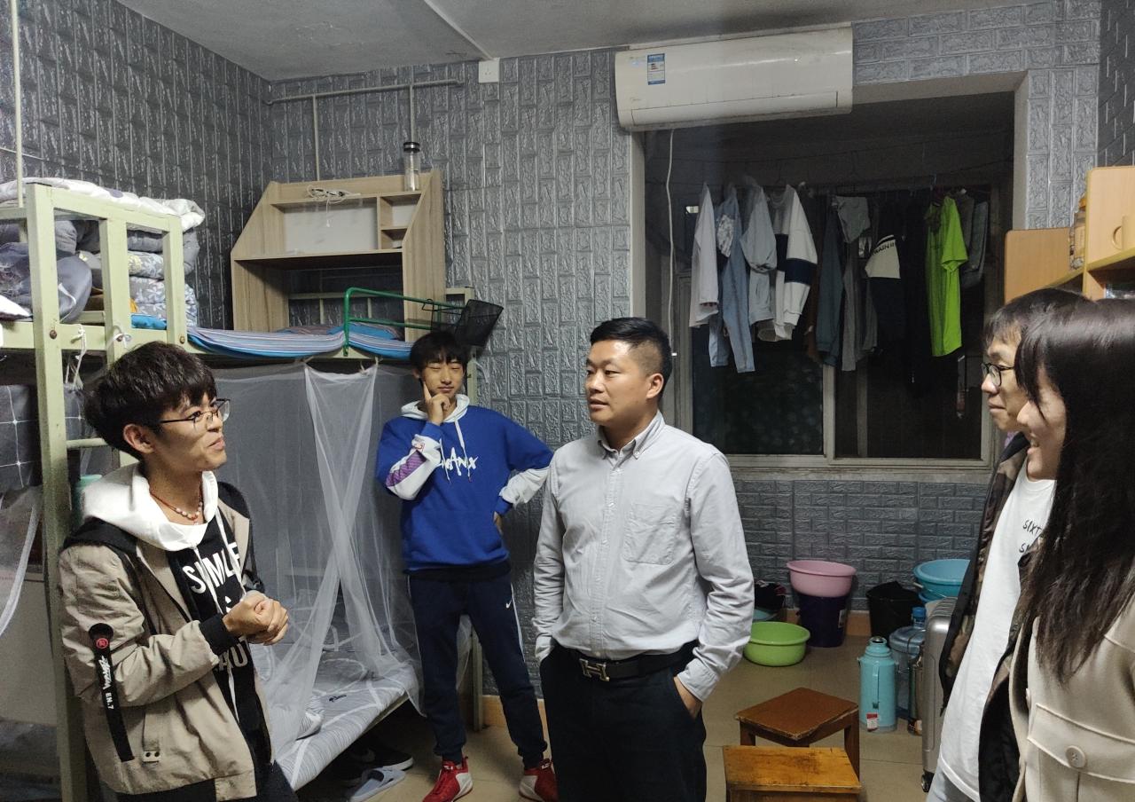 新闻网讯(见习记者 汤莉)为助力军运会,确保军运会期间校园安全稳定,10月20日21:00,公司党委副书记谭亮魁,团委书记尹小华,宿委会主任万钰,辅导员吴钐、付雪娇和兼职辅导员施秀飞走访了M88官方网站本科生和研究生寝室。