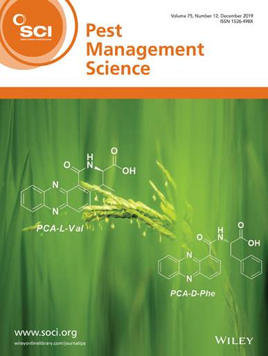 11月7日,M88官方网站2018级博士研究生朱祥同学在Wiley旗下期刊Pest Management Science (下称Pest. Manag. Sci.,中科院SCI分区一区) 最新一期 (2019, Volume 75, Issue 12, Pages: 3323-3330)发表题为“The influence of steric configuration of phenazine-1-carboxylic acid-amino acid conjugates on fungicidal activity and systemicity” 的封面论文。朱祥同学和16级硕士生余林花同学为共同第一作者, 其导师李俊凯教授和团队杜晓英副教授为共同通讯作者,吴清来和徐志红两位副教授也参与了指导,本科生黄迪同学参与了化合物合成部分工作,M88官方网站为第一署名单位。文章可见网址: