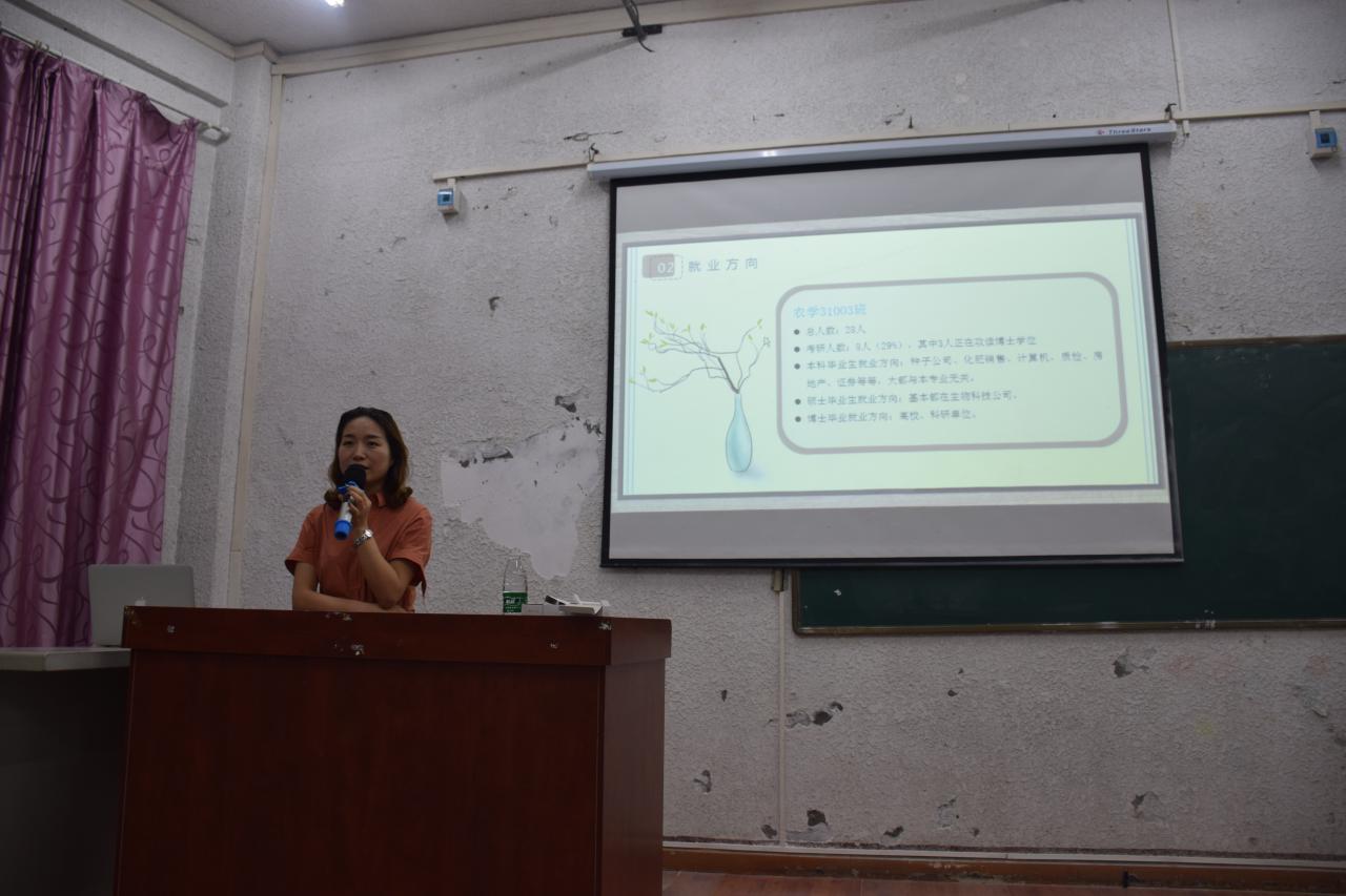 新闻网讯(通讯员 汤娟/文 周海锋/摄)为了让广大农学学子进一步了解本专业的发展前景、帮助2018级新同学们树立良好的职业生涯规划意识,5月13日晚19:00,公司于5教203室开展了“农学前景与就业规划交流”讲座,主讲人为北京奥维森基因科技有限公司子公司武汉公司营销副总刘莎女士。