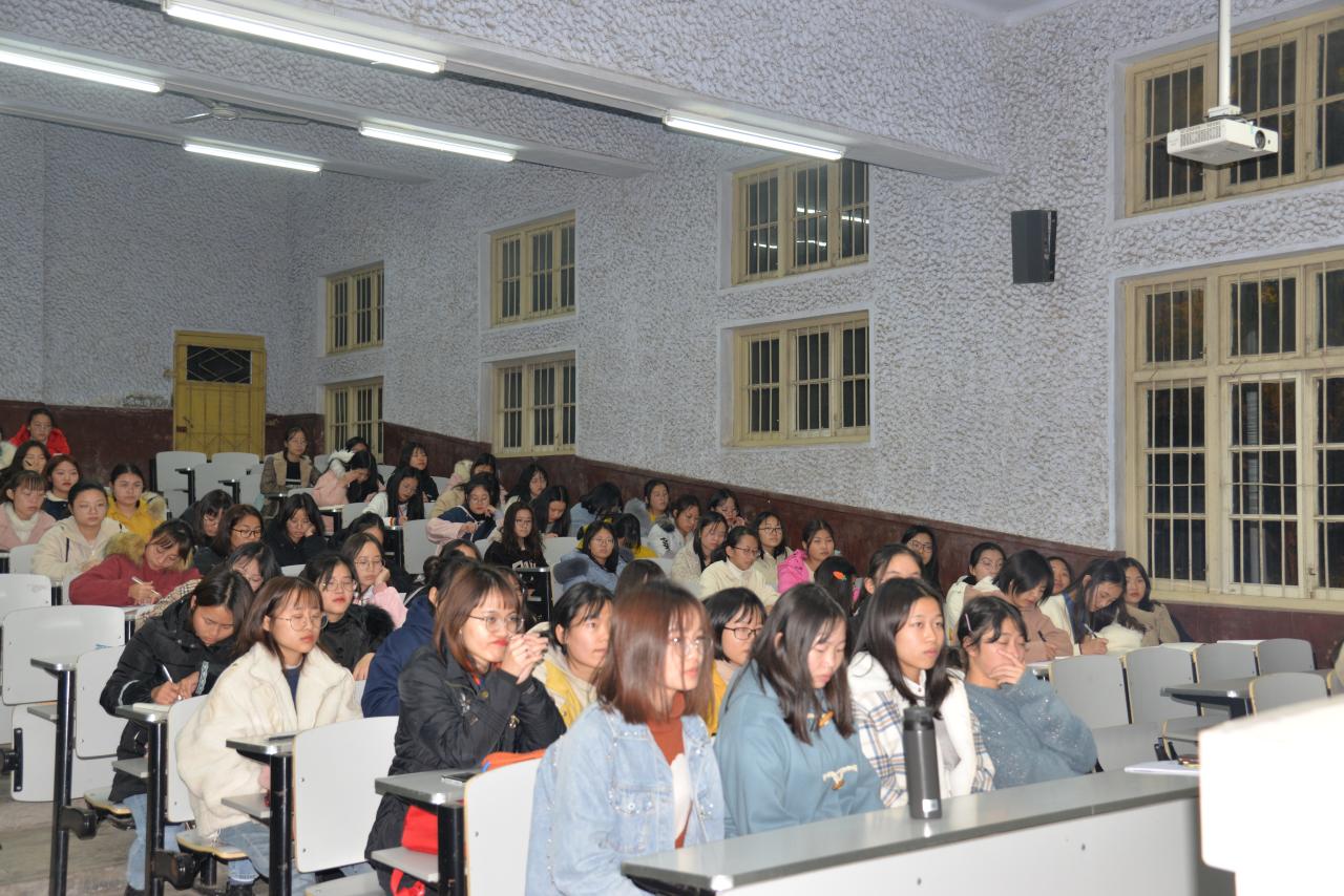 讲座伊始,党委副书记谭亮魁首先结合现实中的案例从女生易受到他人侵害的原因、女生应该如何增强自卫能力以及如何正确处理恋爱关系三方面进行了阐述。他表示,女老员工因缺少社会经验、对危险警觉不足且自身防卫力量较弱而易受到侵害。随后,他郑重提醒女同学们应该通过了解基本的自我保护知识,学习自我防卫技巧,在单独面对陌生人时提高警惕,以增强自卫能力。