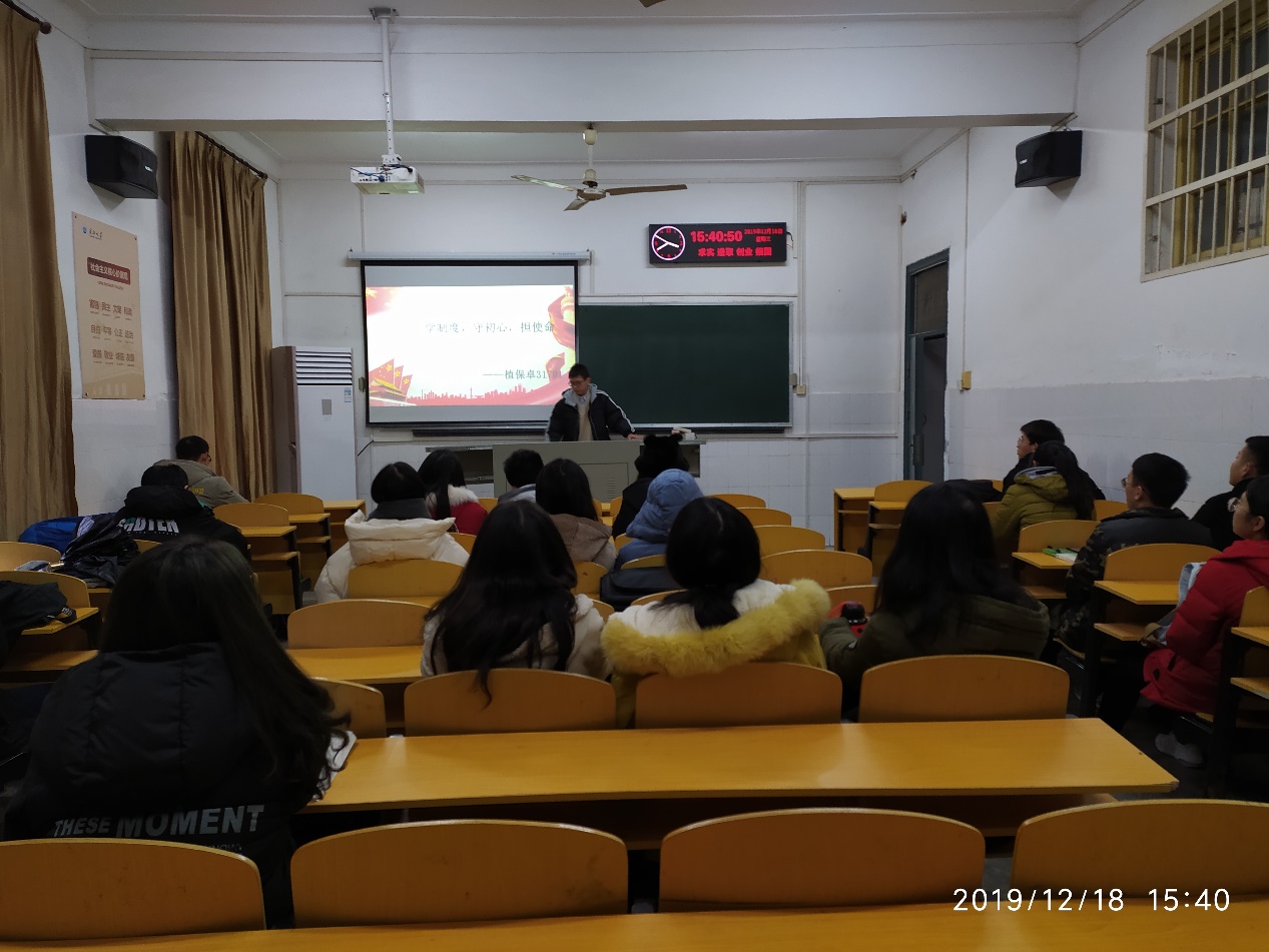 各团支书以开班团会的形式开展了此次活动,团会主要以习近平总书记在党的十九届四中全会上的重要讲话和《中共中央关于坚持和完善中国特色社会主义制度、推进国家治理体系和治理能力现代化若干重大问题的决定》展开。