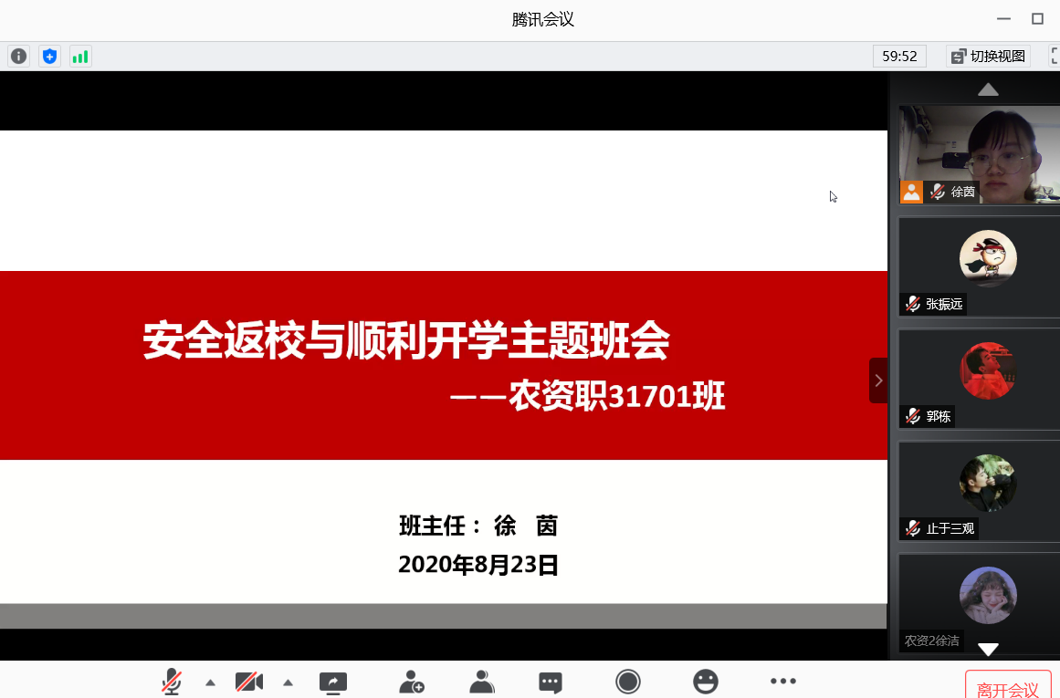 辅导员付雪娇老师通过腾讯会议,向同学进行了详细讲解和安排部署。她提醒同学们返校前需在辅导猫连续打卡14天,进校时出示有效身份证件等有效证件。“中高风险地区如新疆,广东省陆峰市等地的员工进校前要出示8月23号及以后的核酸检测报告。”付老师特别叮嘱道。