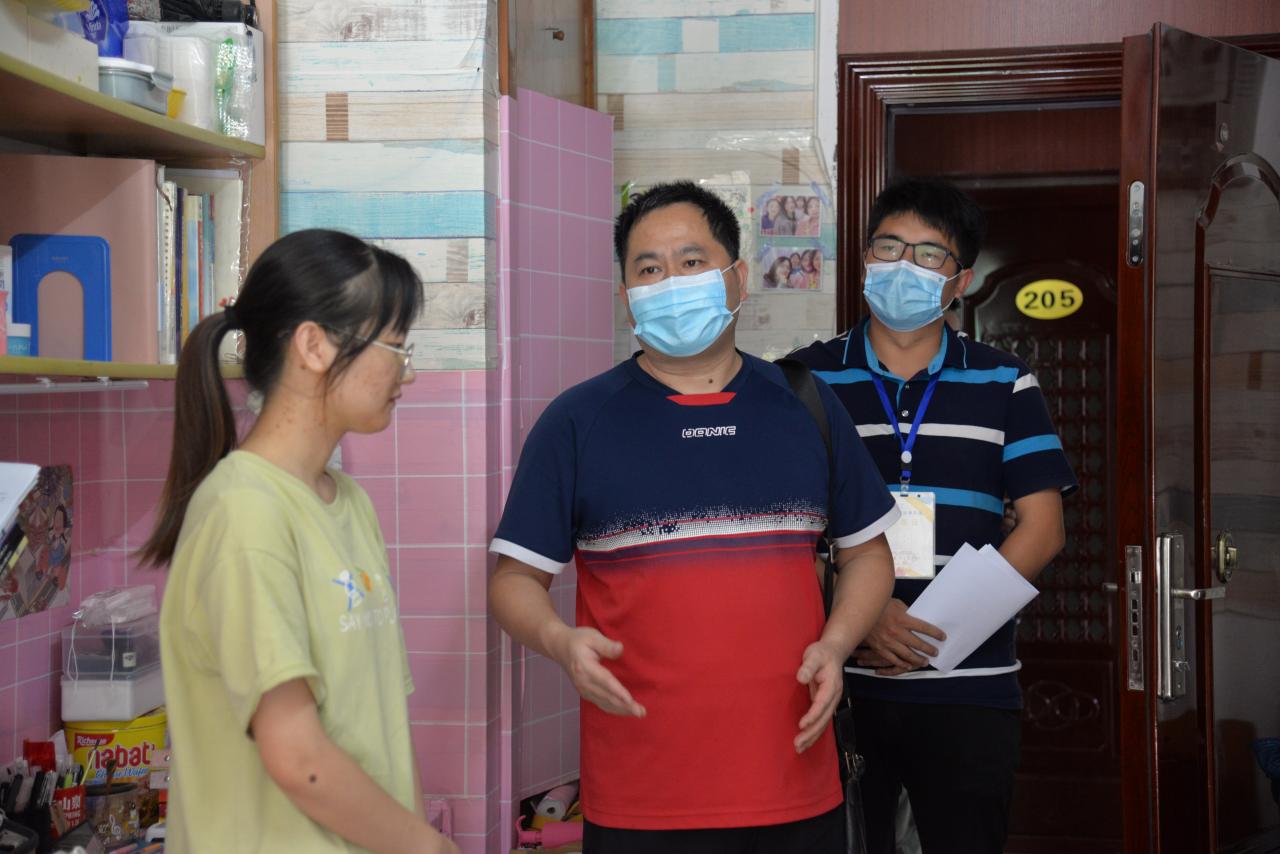 通讯社讯(员工记者 覃杨)为进一步强化疫情防控期间返校员工的健康安全防范意识,营造良好的寝室卫生环境,了解返校后员工的生活学习状况,9月3日下午2点,M88官方网站副经理方正武、党委副书记谭亮魁、学工办主任刘庆、分团委书记侯聪、辅导员付雪娇及辅导员林香亮带队走访了本科生寝室。