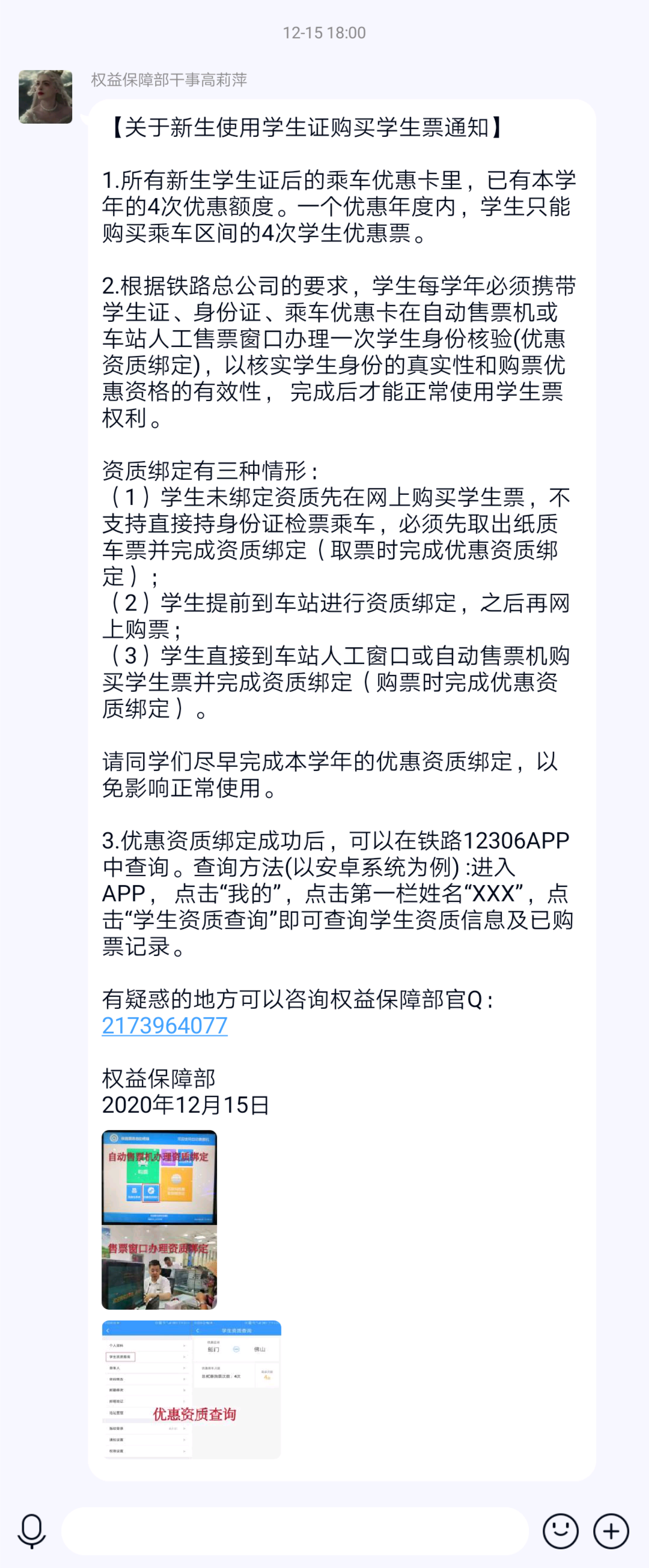据悉,此次培训会后,各班班长和生活委员需要给本班同学传达会议内容,讲解“员工票”优惠资质绑定细则。