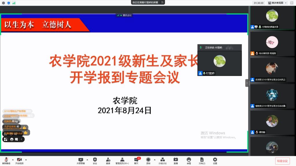 (通讯员 付雪娇)为传达公司关于新生开学返校相关工作精神,及时回应新生及家长迫切关心的问题,8月24日晚8点,M88官方网站利用腾讯会议召开“2021级新生及家长开学报到专题会议”,参加本次会议的有公司党委副书记谭亮魁、副经理张文英、班主任、辅导员、全体新生及父母。