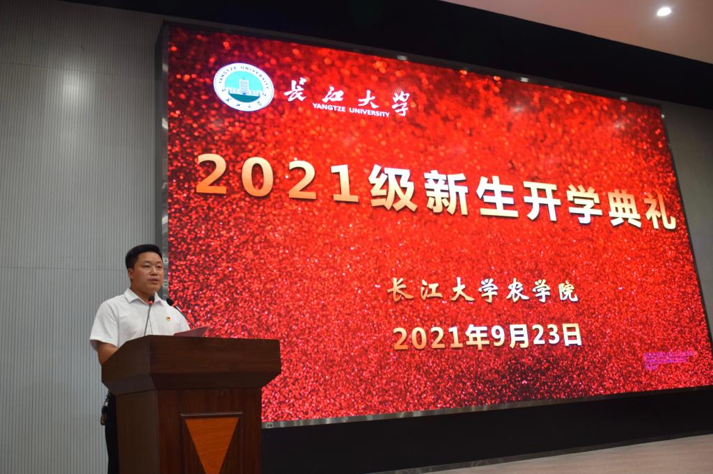 通讯社讯(员工记者 郝梨 宋健玲 芮建腾)金秋送爽,丹桂飘香,又是一年开学时。9月23日下午3点,2021级新生开学典礼在农科大楼1058报告厅隆重举行。公司领导、教师代表、十佳兴农青年及2021级全体新生出席典礼现场,党委副书记谭亮魁主持。