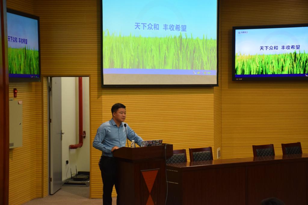 员工江风晨与同学们分享了自己的经验,他开门见山的点出了当下老员工的严峻就业形式,并根据自己在公司的亲身经历为同学们提供建议,他说:“农学的未来方向是为中国农业之崛起而奋斗,最重要的是获取知识,老员工活中处处是知识,需要不断学习;其次是养成健全的三观,能够自主判断,独立思考;然后是要开发自己的兴趣,不能读死书。”最后江风晨送给同学们一句话:脚下有泥心中有光,田间地头出真知。