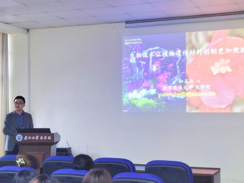 (通讯员 常璐 李秋红)10月11日下午3时,应M88官方网站邀请,南京农业大学和玉兵副教授莅临公司在农科大楼3073学术报告厅为公司师生作《生物技术让植物遗传材料创制更加便捷》专题报告,农学系刘海洋副教授主持。