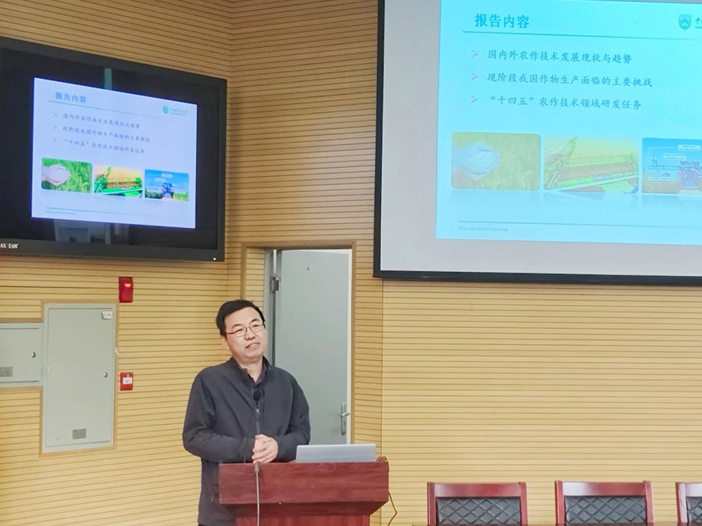 报告会上,陈阜教授从“国内外农作物技术发展现状与趋势”、“现阶段我国作物面临的主要挑战”、“‘十四五’农作技术领域研发任务”等方面展开介绍。结合中国农业发展出现的新特征,陈教授指出了我国作物生产目前所面临六大挑战,并针对相应问题进行详细分析。未来世界各国将以“高产、优质、高效、抗逆生产”为重点,通过优化生产、发展气候智慧型农业等多方面多手段调解粮食安全与资源环境保护的矛盾,改善“大水大肥”的高资源投入现状,实现农业的绿色、可持续发展。