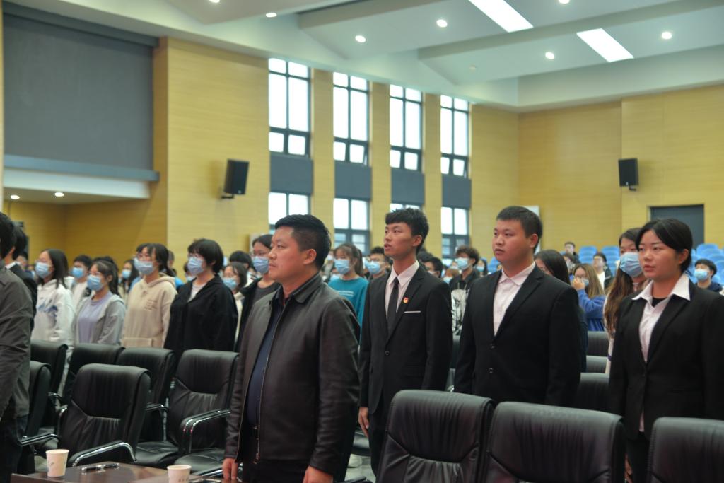 成立大会在雄浑激昂的国歌声中拉开序幕,参会嘉宾与全场员工,群情激昂,精神抖擞。由学工办主任刘庆宣读了《第十八届团委员工会、员工发展管理委员会》及《第七届宿舍管理委员会主要干部的任命决定》。随后,团委员工会主席团成员孙振艳、员工发展管理委员会副主任高旭园、宿舍管理委员会副主任何洁依次上台介绍各部门情况。员工会主席团成员亢凯带领2021年全体团学联成员作就职宣誓。铮铮誓词,句句深入肺腑,字字代表求真务实的工作态度与为学服务的坚定信念,激励着全体团学联成员不忘初心,砥砺前行。