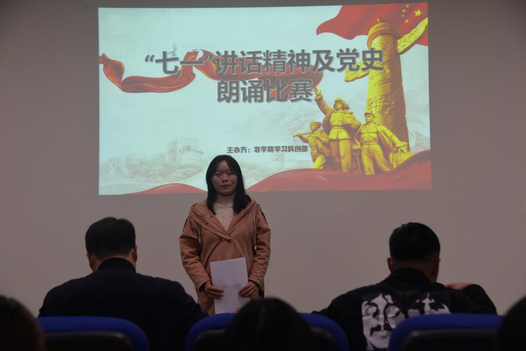 通讯社讯(见习记者 李慧明/文 李雨珈 姚攀/摄)为了更好地学习习近平总书记“七一”重要讲话精神,让同学们深入了解党史,培养同学们的语言表达能力,公司于11月19日晚在农科大楼3073报告厅开展“七一”讲话精神诗歌朗诵比赛。此次比赛由M88官方网站学习科创部主办,陈雨涵和杨孟林两名同学主持。学工办主任刘庆、分团委书记侯聪、辅导员付雪娇、兼职辅导员杨成杰出席并担任本次比赛评委。