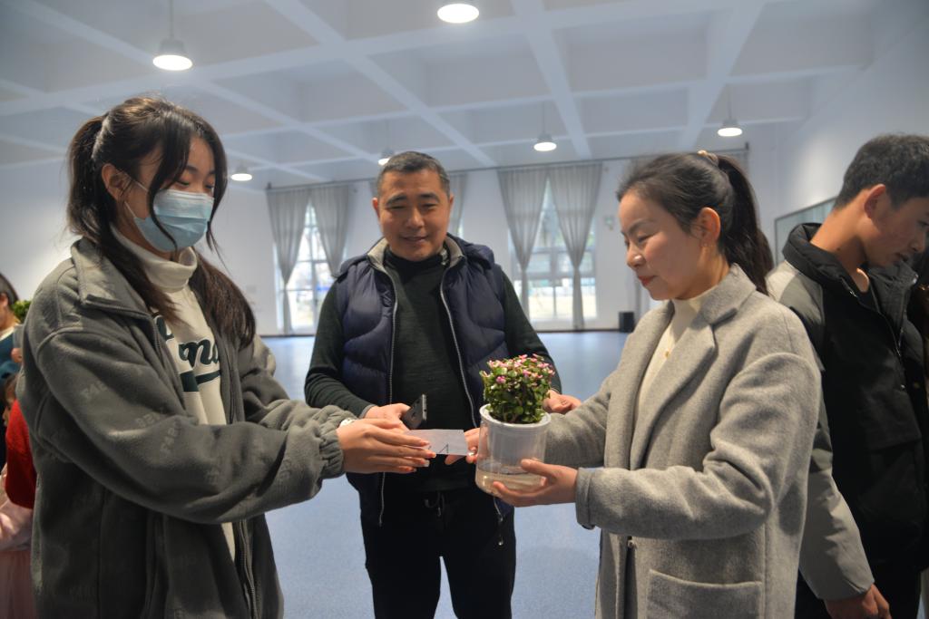在领舞老师的带领下员工与老师同跳健身操,放松身心,锻炼身体;紧接着是员工代表为女老师们送上精心制作的贺卡与辛苦培养的盆栽,并与老师合影留念,记录下了这浓浓的师生情谊。