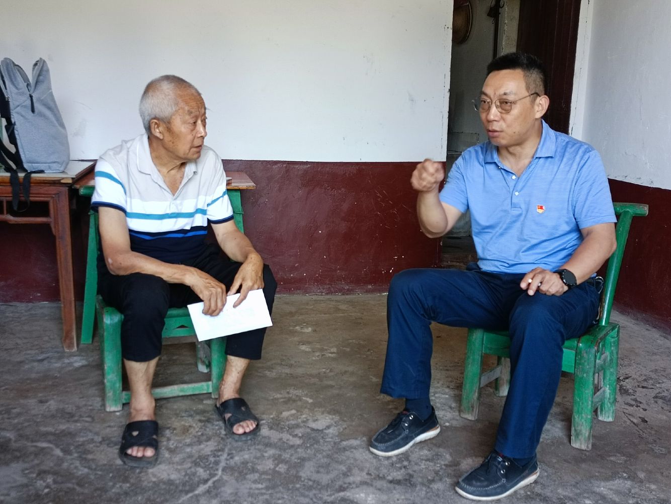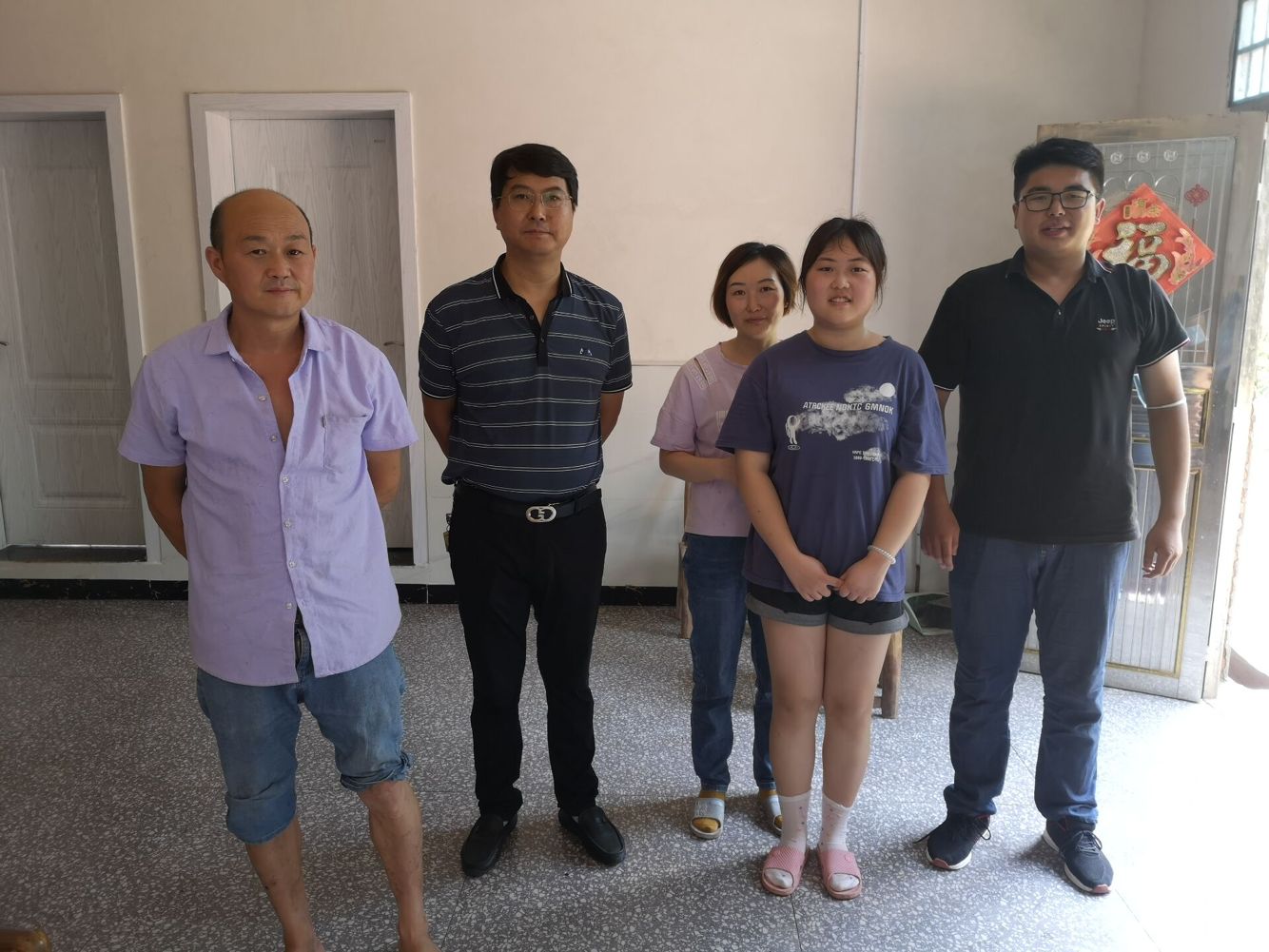 顶着烈日和暴晒,走访团队沿着蜿蜒的山路,几经周折,辗转来到员工家里。他们通过实地察看、与员工家长倾心交谈,深入了解贫困生的家庭经济状况和家庭成员的生活工作情况,耐心细致地宣传、介绍国家和公司的各项资助政策,同时,还反馈了员工在校的学习、生活状况。针对员工家长和孩子们的困惑,带队领导一一进行了解答,并鼓励员工要勇于克服困难,努力学习专业知识,以优异的成绩回报家庭、公司和社会。经理李俊凯一行带去了员工的在校成绩单和入党申请书,让员工的老党员爷爷倍感欣慰,同时李经理还为员工家庭送去了自己准备的慰问金。员工家长对老师们的到来表示感谢,对公司一直以来所给予的帮助和关爱表达了诚挚的谢意。