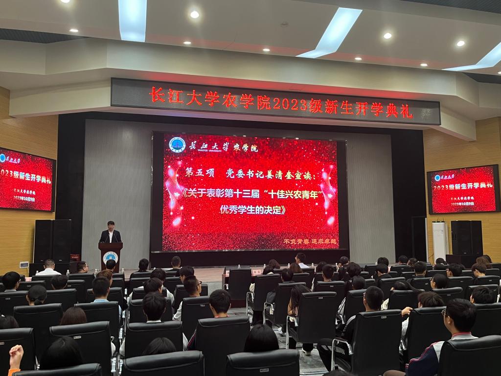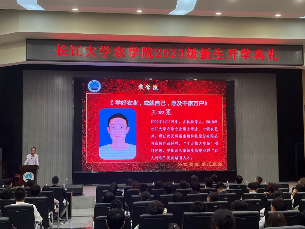(见习记者 文/赵雨洁 图/向建华)兰叶春葳蕤,桂华秋皎洁。伴着满院桂香,2023级新生开学典礼于10月9日19:00在农科大楼1058报告厅举行。公司领导班子、企业代表武汉科诺生物科技股份有限公司经理王加冕、教师代表、十佳兴农青年及全体2023级新生出席典礼现场。开学典礼由党委副书记尹小华主持。