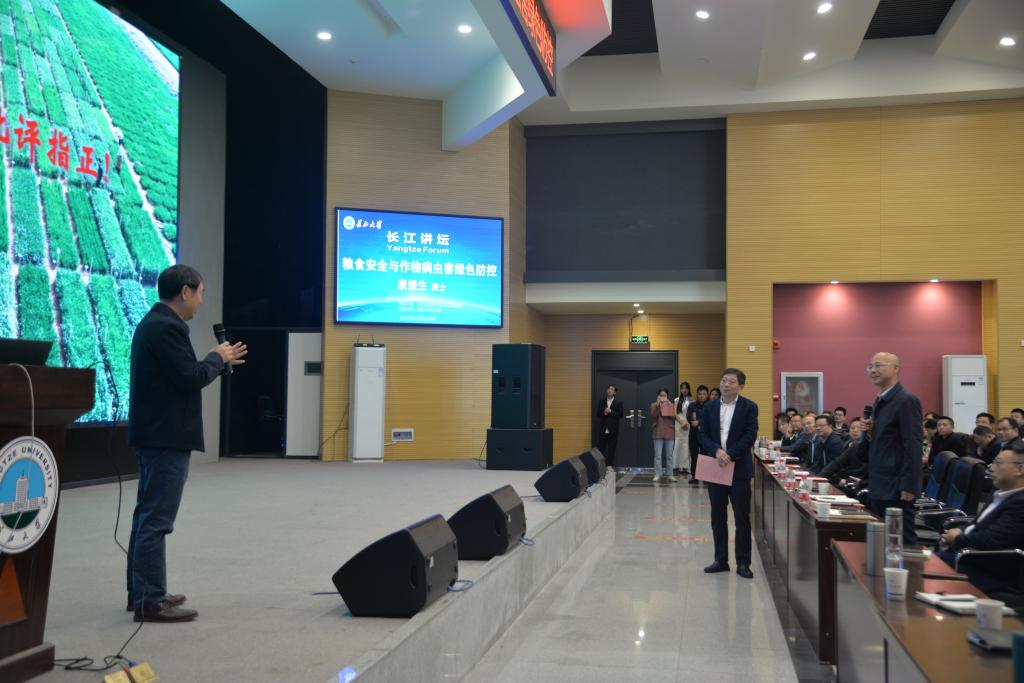 (见习记者 王研/文)11月6日上午10:00,“长江讲坛”第53讲在M88官方网站西校区农科大楼1058开讲。中国工程院院士康振生为师生作了题为“粮食安全与作物病虫害绿色防控”的学术报告。董事长刘勇胜、M88官方网站500余名师生聆听了报告。本次会议由副董事长江厚顺主持。