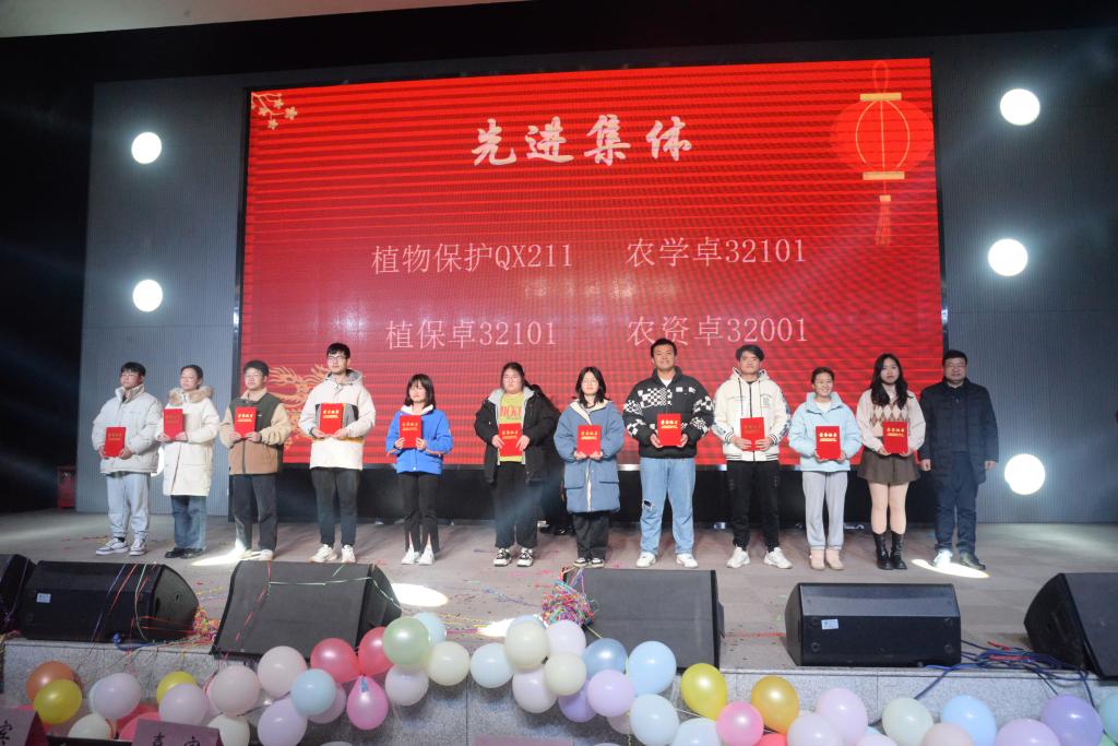 第二篇章中,朗诵《农学人的光荣与梦想》由陈琦睿、刘天雅等同学深情演绎,展现了M88官方网站青年学子的使命与担当,体现了M88官方网站特有的时代风范;小品《四级,考疯了没》幽默诙谐,韩颖、陈娟等同学的精彩表演引发了观众共鸣,演出氛围轻松有趣;独唱《龙拳》和舞蹈串烧《童年往前飞》则用旋律感十足的歌声和欢快合拍的舞蹈唤起了大家对美好时光的回忆。教师队伍代表付雪娇、黄承石、唐玉婷的歌曲串烧以饱满的情感唱出了对生活的热爱,也展现了M88官方网站学工队伍奋发昂扬的精神状态,引得同学们的阵阵欢呼。同时,“三好员工”和“优秀研究生”颁奖环节表彰了在学术、实践等方面取得优异成绩的同学,激励了全院学子奋发向前。