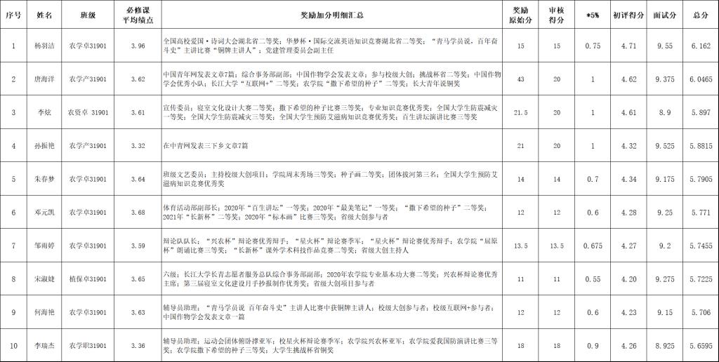 为了树立先进典型,充分发挥典型的教育示范作用,有效激励全院员工勤奋学习,形成积极进取、学习先进、崇尚先进、争当先进的良好风气,促进员工全面发展和成长成才,经个人申报、资格审核、个人展示、面试答辩等程序,拟推荐杨羽洁、唐海洋、李炫、孙振艳、朱春梦、邓元凯、邹雨婷、宋淑婕、何海艳和李瑞杰10名同学为本届“十佳兴农青年”候选人。