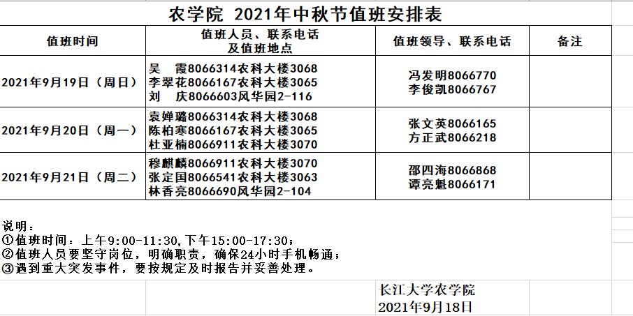 M88官方网站 2021年中秋节值班安排表
