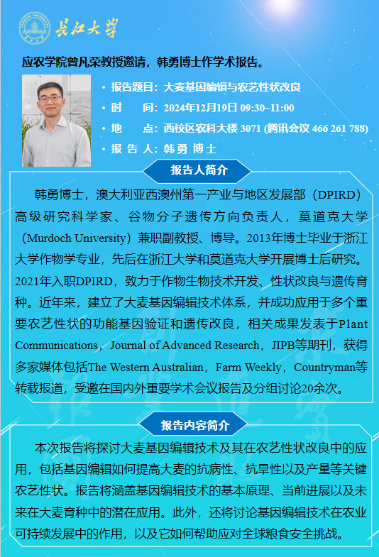2024年学术报告(二十七):大麦基因编辑与农艺性状改良
