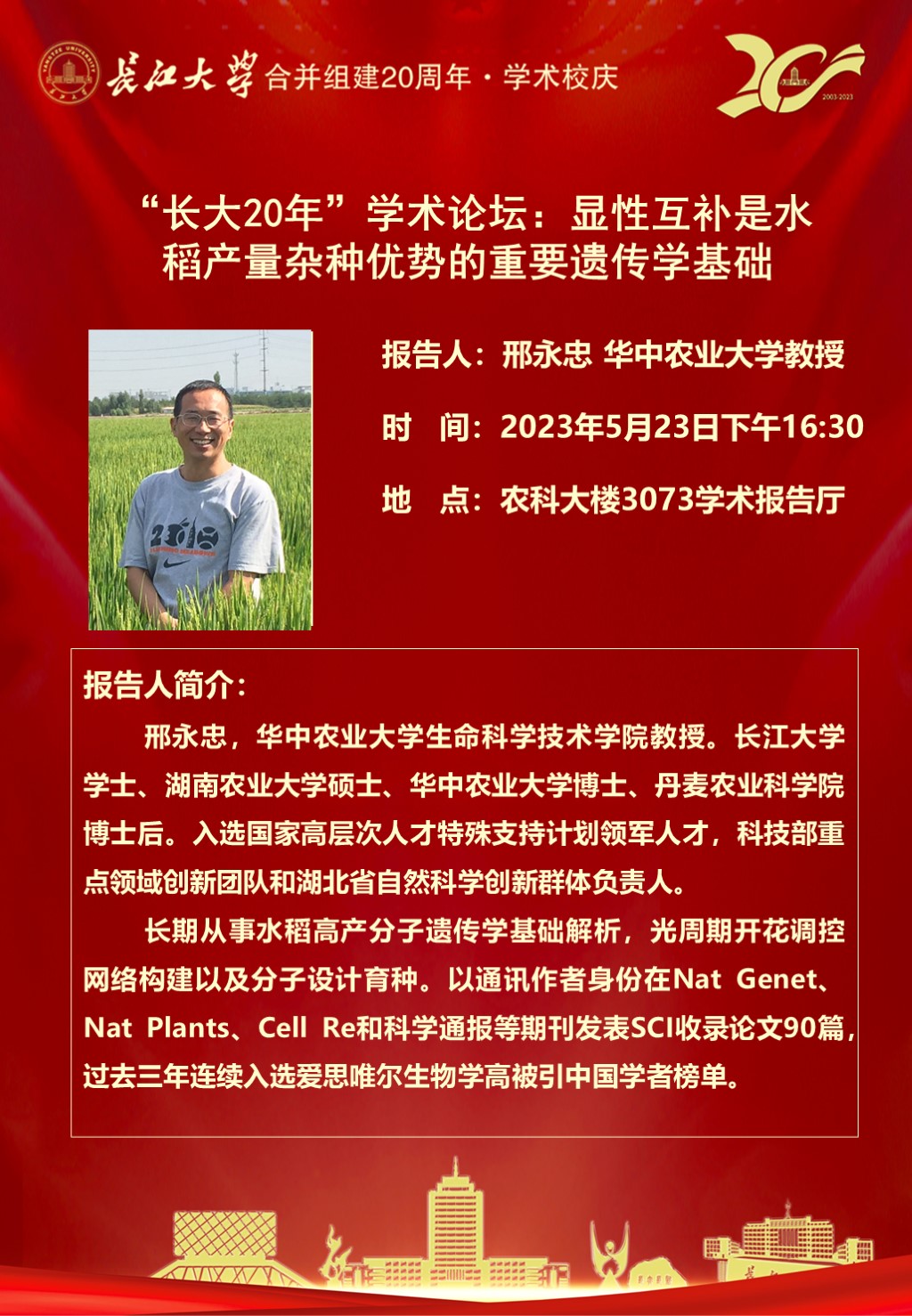 “长大20年”学术论坛暨M88官方网站学术讲坛:显性互补是水稻产量杂种优势的重要遗传学基础