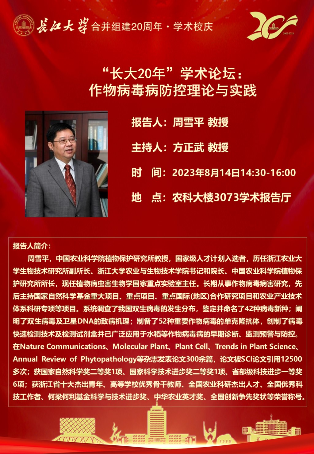 “长大20年”学术论坛暨M88官方网站学术讲坛:作物病毒病防控理论与实践