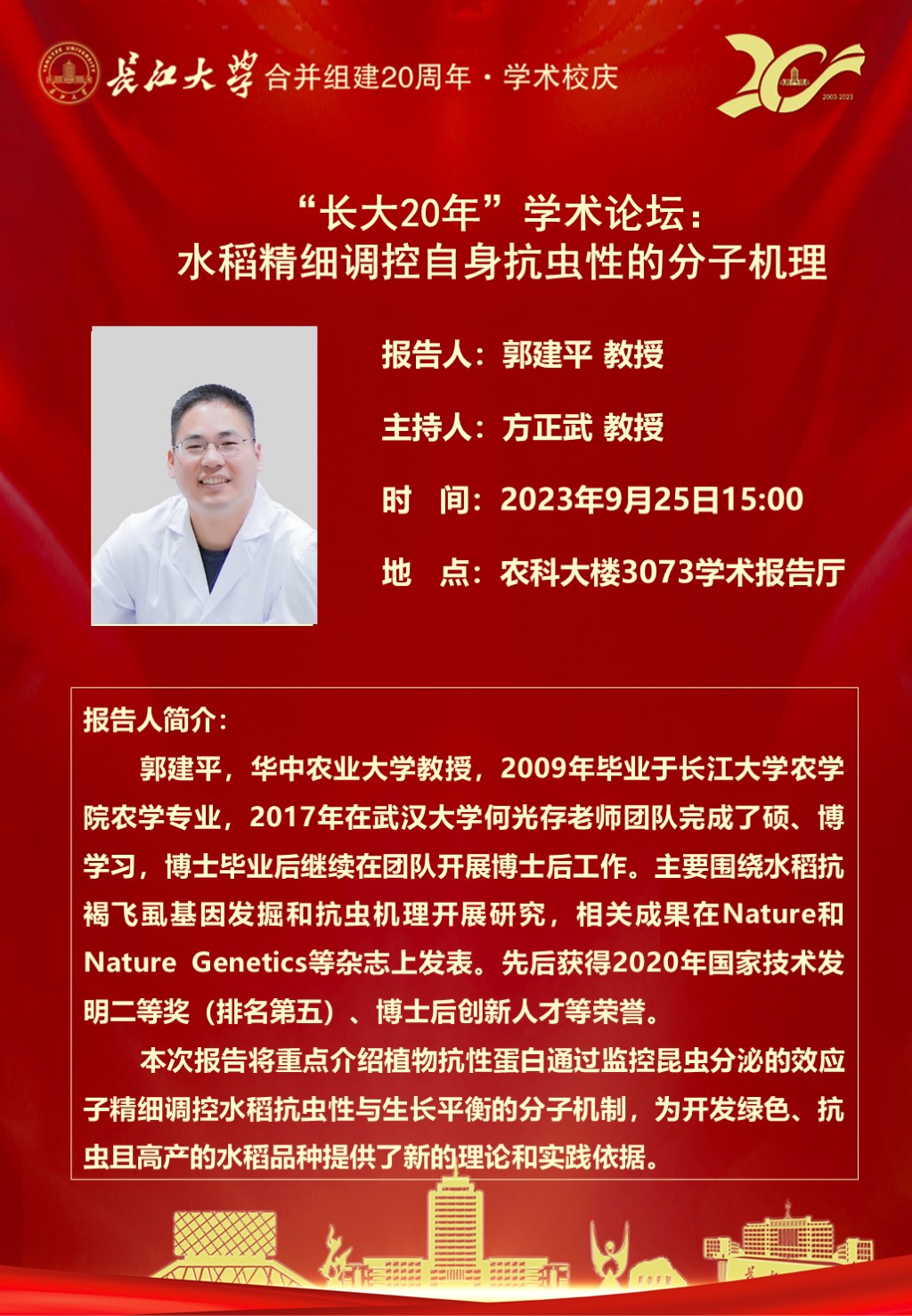 “长大20年”学术论坛暨M88官方网站学术讲坛:水稻精细调控自身抗虫性的分子机理