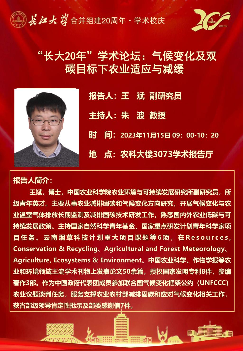 “长大20年”学术论坛暨M88官方网站学术讲坛:气候变化及双碳目标下农业适应与减缓