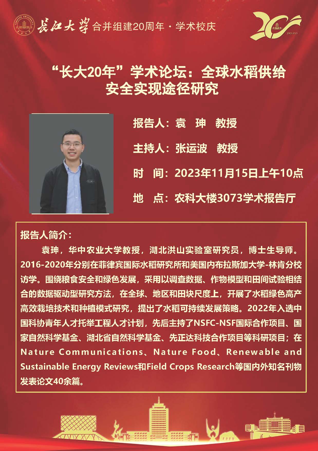 “长大20年”学术论坛暨M88官方网站学术讲坛:全球水稻供给安全实现途径研究