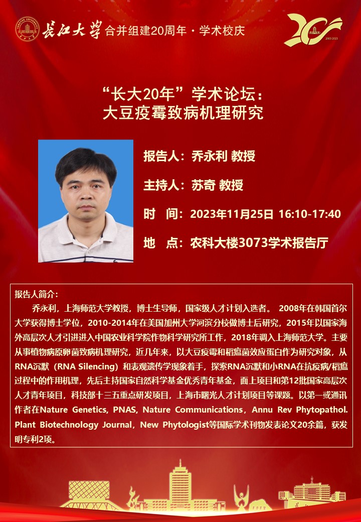 “长大20年”学术论坛暨M88官方网站学术讲坛:大豆疫霉致病机理研究