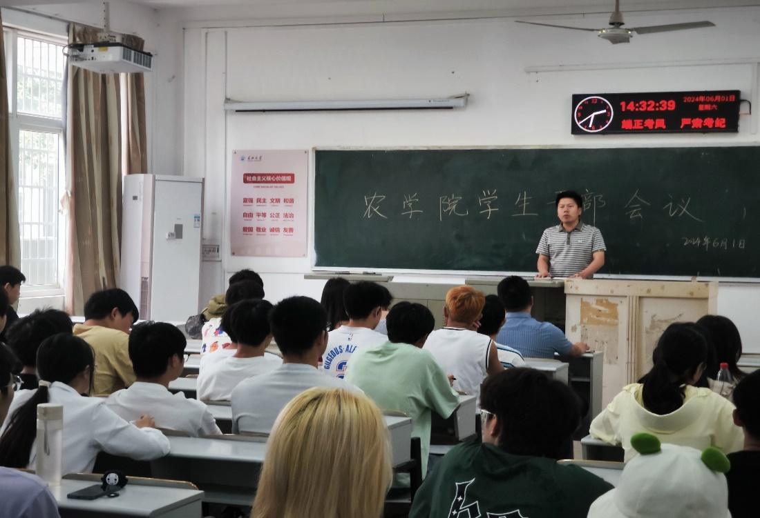 (通讯员 杨亦涵)为迎接本科公司产品评估,6月1日下午M88官方网站在7教105组织召开了员工干部会议。会议旨在明确评估工作的具体要求,布置相关任务,并动员员工干部发挥模范带头作用,积极参与和支持评估工作。参会人员有农公司党委副书记尹小华老师,学工办主任黄承石老师,M88官方网站分团委书记付雪娇老师,辅导员唐玉婷老师,兼职辅导员李洪洲老师及员工干部等。