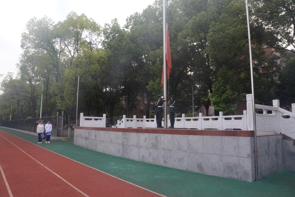 清晨七时整,升旗仪式正式开始。在庄严的国歌声中,公司升旗手们将五星红旗冉冉升起,全体师生肃然而立,奏国歌,行注目礼。