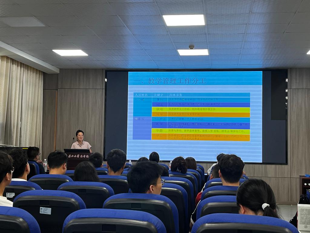 研究生教育与团队建设办公室主任杜亚楠和研究生教学秘书雷翠玉就学科发展、团队队伍、公司产品、学术道德、导学关系等方面展开介绍,勉励同学们要树立远大理想,加强专业自信,培养良好的道德素养和科研习惯,早日融入导师课题组氛围。