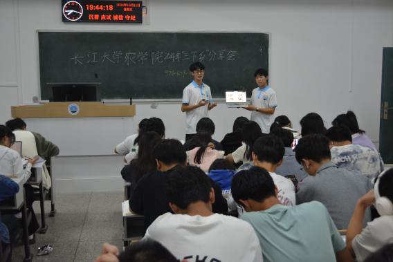 (通讯员 刘天雅 刘钬桥 史庆潇)为厚植爱农情怀,引导新生深入了解国情农情,并鼓励其积极参与社会实践活动,M88官方网站暑期三下乡社会实践服务队于10月11日晚19点,走进新生自习室举行2024年暑期“三下乡”社会实践活动分享会。