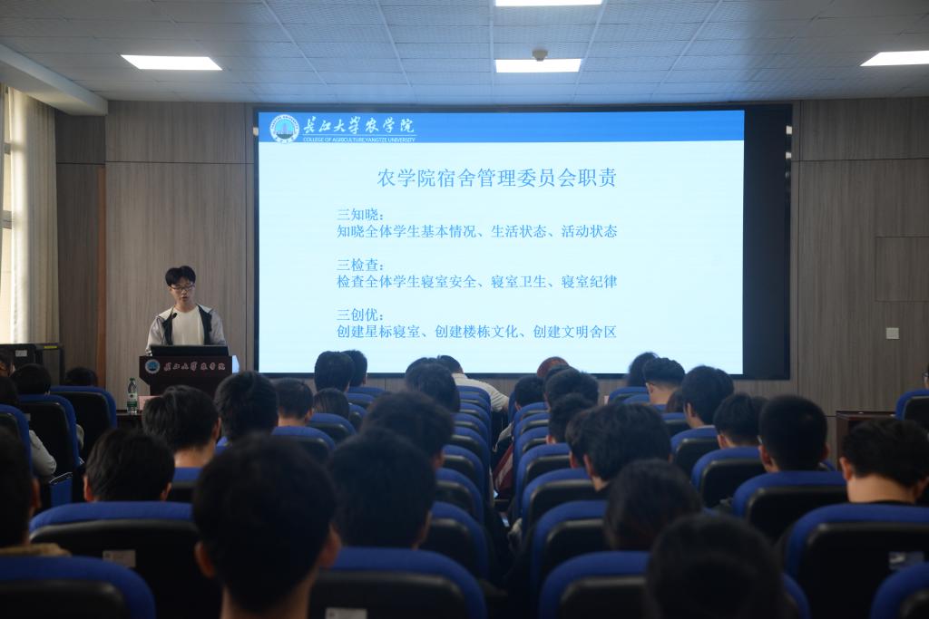 首先,由宿委会副主任刘佳豪进行发言。他从认识宿委会,宿委会成员介绍,宿委会工作介绍 ,M88官方网站提出工作要求,安全委员的职责,对安全委员的工作要求这六方面展开叙述。明确了寝室建设细则,例如“三知晓、三检查、三创优”并对员工在寝生活提出具体要求。
