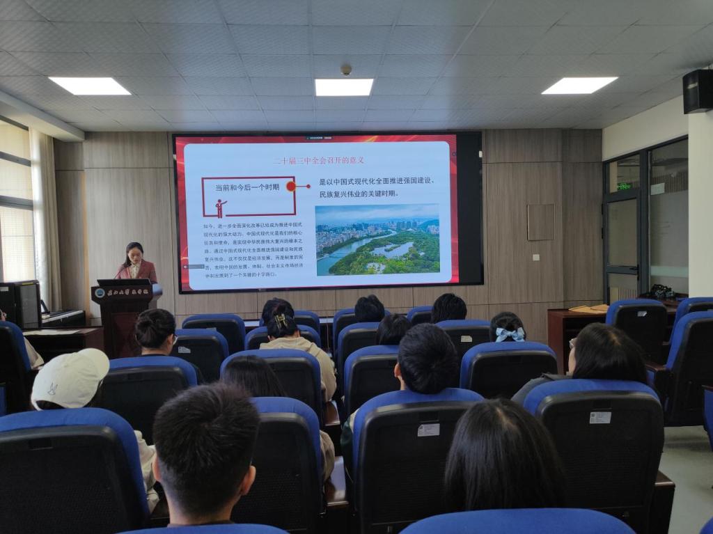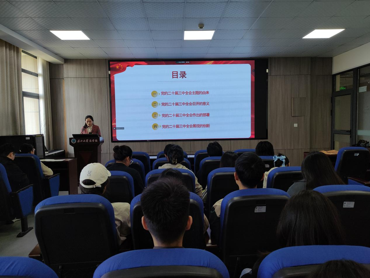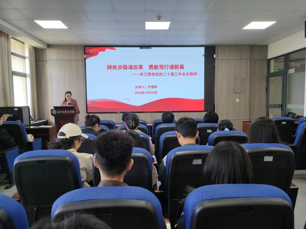 (通讯员 任娇 宋梦圆)为深入学习贯彻党的二十届三中全会精神,引导广大青年深刻领会全会精神,激发他们的责任感与使命感。10月23日,M88官方网站团委书记付雪娇在农科大楼3073会议室以“蹄疾步稳谋改革 勇毅笃行谱新篇”为题为80余名党员、积极分子上了一堂精彩的思政课。