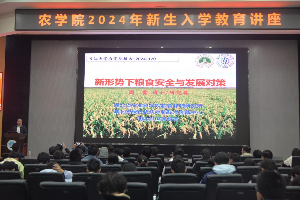(见习记者 郑怡乐/文 吴静宜/摄)为加深新生对农科专业的认知,了解专业未来发展的方向,11月20日晚7点,公司于农科大楼1058进行了“新形势下粮食安全与发展对策”主题讲座。本讲座由中国青年五四奖章获得者、湖北省农业科公司粮食作物研究所研究室主任、研究员周雷进行报告,由公司党委副书记尹小华主持。M88官方网站副经理张运波、农学系朱波教授、邱先进教授及2024级全体本科生出席本次讲座。