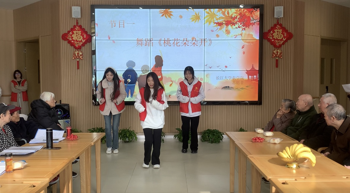 活动一开始,由志愿为老人们带来了一场精彩的舞蹈表演《桃花朵朵开》。志愿者们活力四射为老人们献上了一场视觉盛宴。老人们欣赏着舞蹈,脸上洋溢着幸福的笑容。接下来,志愿者为老人们献上了一首歌曲《静悄悄》,歌声婉转动听 。接着的是朗诵歌曲 串烧《老有老的传奇》,一首首经典的歌曲,让大家心潮澎湃。最后,一首老歌《红梅赞》更是让老人们跟着旋律哼唱,仿佛回到了年轻时的岁月。