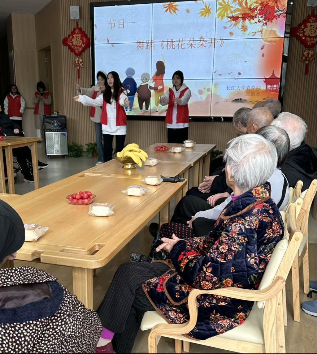 在梅村社区康养养老服务中心,志愿者们以温暖的笑容和细心的关怀,为老人们带去了欢乐和陪伴。他们与老人亲切交流,倾听他们的故事,了解他们的需求。还陪老人散步、聊天、讲笑话,不一会儿,老人们脸上便绽放出慈祥的笑容。在互动环节,志愿者们为老人们表演了精彩的节目,歌声回荡在养老院中,老人们也情不自禁地打着拍子,轻声和唱,现场气氛温馨而感人。