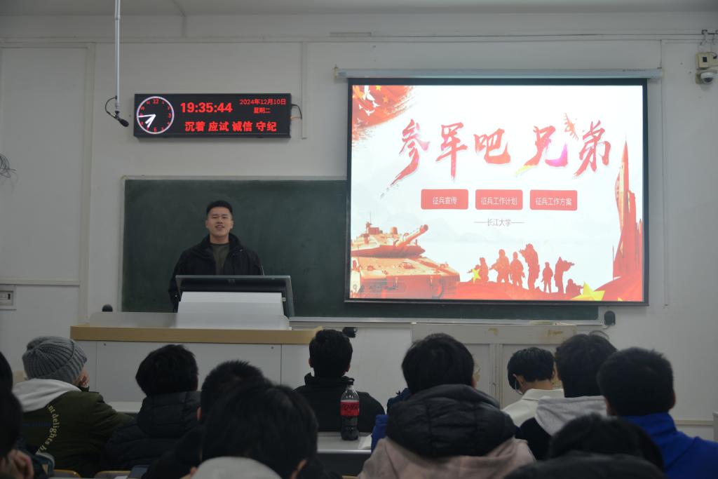 (通讯员 吴泓萱 吴静宜)征兵宣传进校园,点燃学子参军梦。12月10日晚7点,M88官方网站组织员工开展2025年春季征兵宣讲会。公司征兵宣讲员高依恒、郑一成主讲,M88官方网站征兵专干林香亮主持活动。