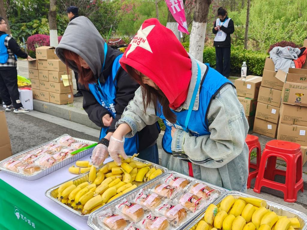 农学卓32201班的郑晓华同学在赛后的总结上表示:“我们愿做春天里的一缕微风,助每一份热爱随风远航。”“虽然早起很辛苦,但想到能为跑者提供支持,心里就干劲十足。”植保职32401班的张可欣同学边说边整理着桌面,她的笑容与身后缓缓升起的日光相映成趣。