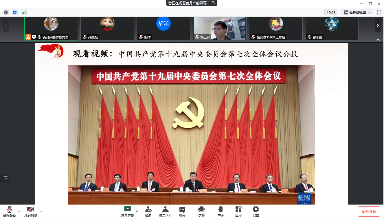 (通讯员 杨先强)10月9日至12日,中国共产党第十九届中央委员会第七次全体会议于北京举行,大会通过了中国共产党第十九届中央委员会第七次全体会议公报。M88官方网站通过腾讯会议组织师生线上进行学习观看。