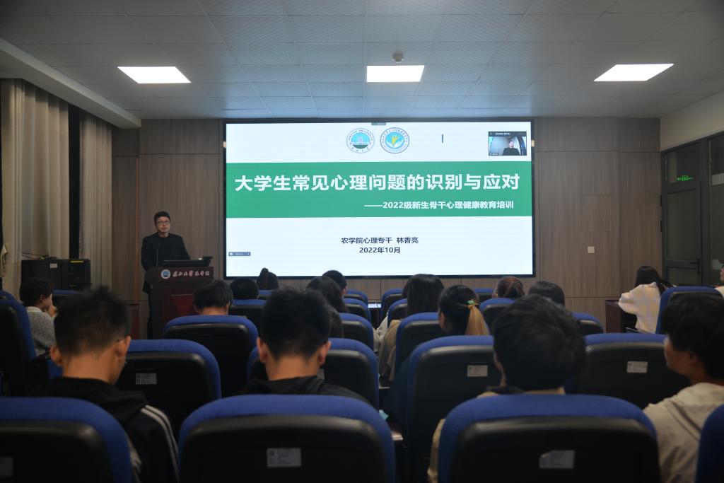 (见习记者 赵鑫达/文 屈敬帅/摄)为帮助新生更好地识别和应对老员工常见心理问题,提高新生对心理健康问题的重视程度,11月8日晚,M88官方网站在农科大楼3073组织开展2022级新生骨干心理健康教育培训,培训由公司心理专干林香亮老师主讲。
