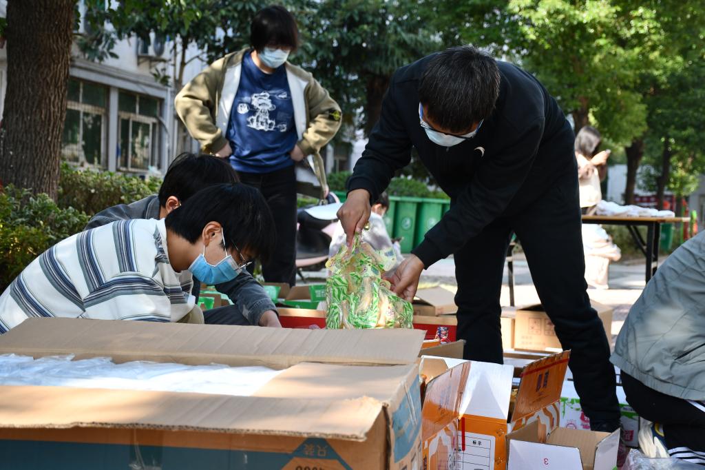 关于组织全员核酸检测方面,志愿者们往往天不亮便早起来到检测地点,将桌椅、帐篷、消毒物品等需用物品摆放整齐到位,组织同学们以楼层为单位下楼做核酸,尽量减少人员聚集;在做核酸时,志愿者们主动承担身份信息录入、身份核检、分发咽拭子棒等工作,有效减少医护人员的工作,使得核酸检测快速进行,同时提醒同学们排队间隔一米以上,防止交叉感染。关于分发物资方面,志愿者们更是不辞辛苦地为同学们服务,尽心尽力将防疫口罩和食品物资由班级分发到各个同学手上。