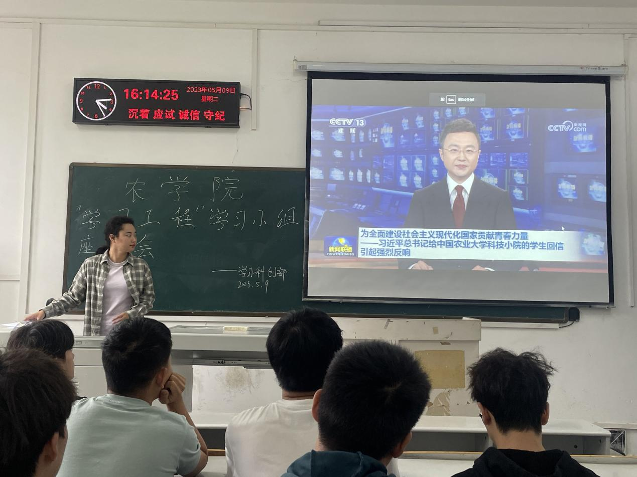 其中农资卓32101班班长围绕“怀抱梦想、脚踏实地”这两个关键词,以习近平总书记的回信为契机,召开“学习习近平总书记给中国农业大学科技小院的员工回信精神”主题班团会。